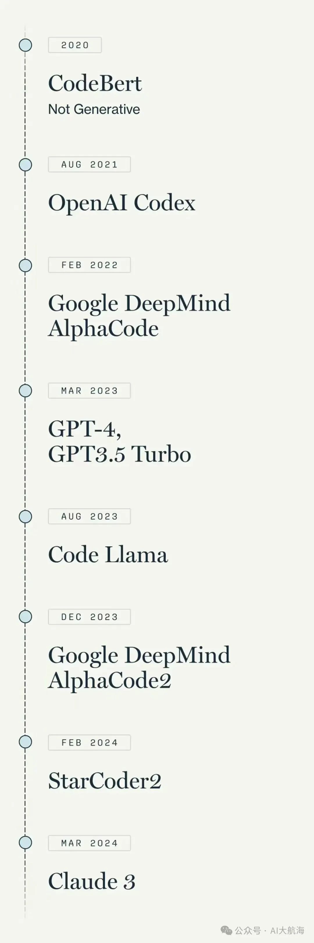 注:时间线仅显示了部分代码模型和用于编码的LLM