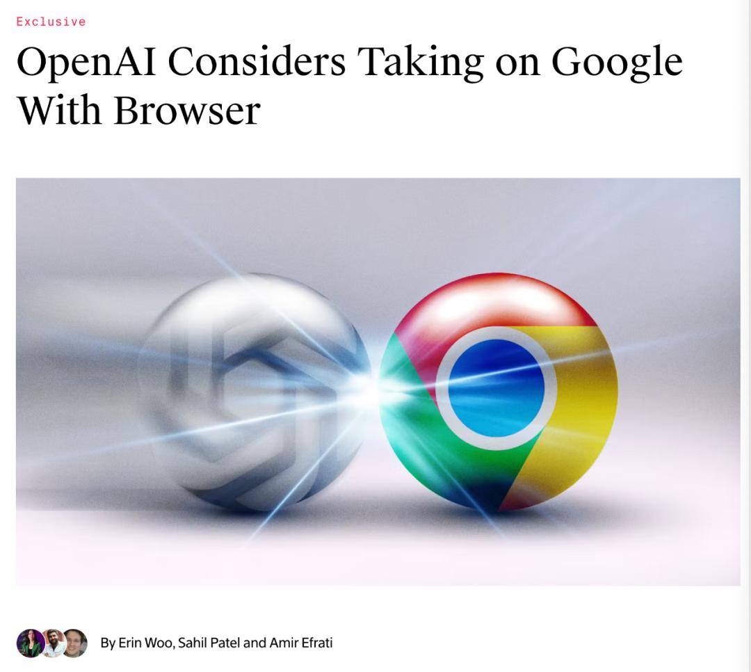 OpenAI 已经组建相关团队计划开发「AI 浏览器」|图片来源:The Information