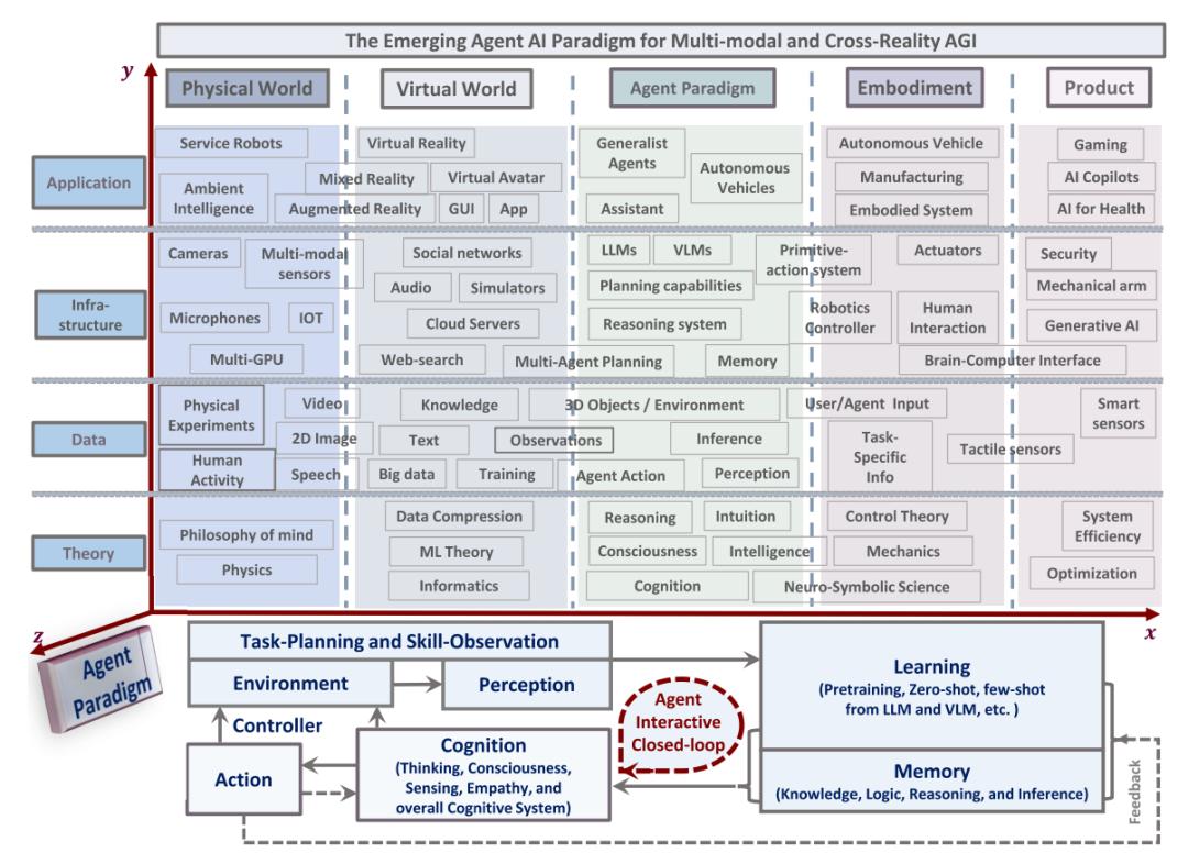 在论文《Agent AI- Surveying the Horizons of Multimodal Interaction》中,研究团队从“空间智能”的视角,讨论了Agent在物理和虚拟环境中的交互性。