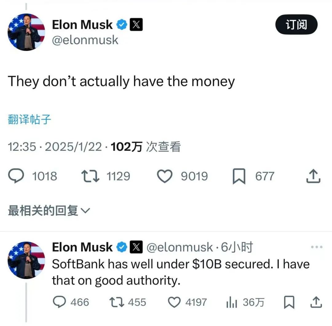 还有则是更现实的「钱」的问题。在OpenAI官宣该计划后,「宿敌」马斯克又跳了出来,直接评论:“他们实际上没有钱。”“软银的融资保障金额远低于100亿美元。”
