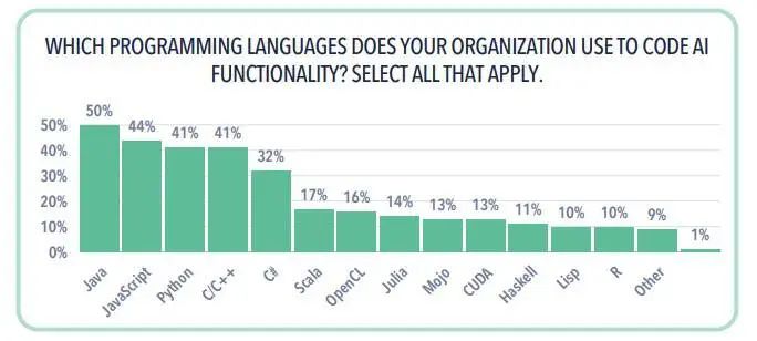为了解企业如何在不断发展的技术环境中使用 Java,大型 Java 平台提供商 Azul Systems 发起了一项调查,调查报告显示,50% 的组织使用 Java 来构建 AI 功能,在以 Java 为中心的企业中,其 AI 开发使用量超过了 Python 和 JavaScript。