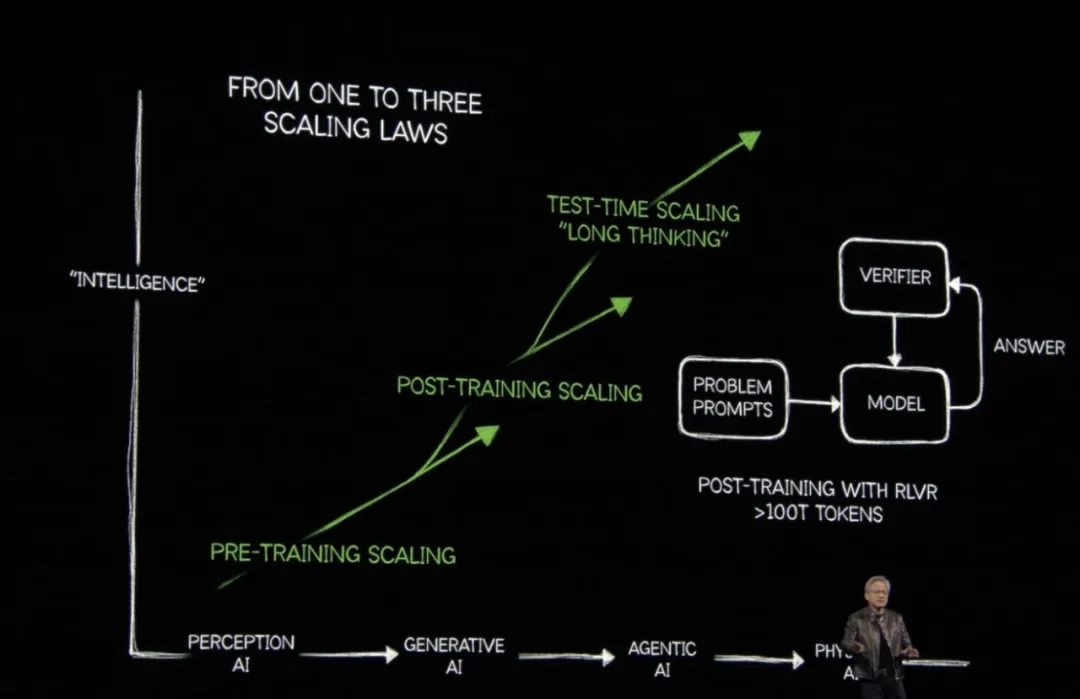 如此反复强调tokens,某种程度上黄仁勋在说Scaling Law没有终结,源源不断的tokens消耗,就能带来持续的算力需求,这是英伟达讲述一切增长的前提。