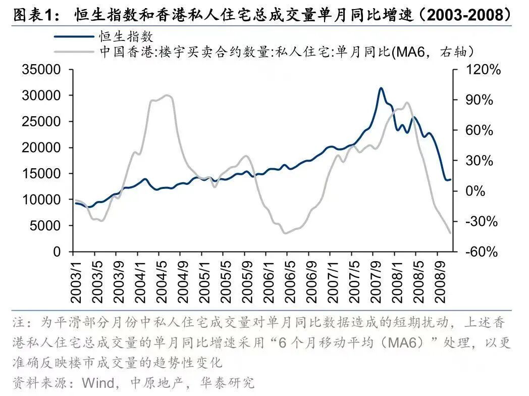 QE货币宽松周期,香港股市、楼市成交量复苏节奏对比,图源:华泰证券研究所