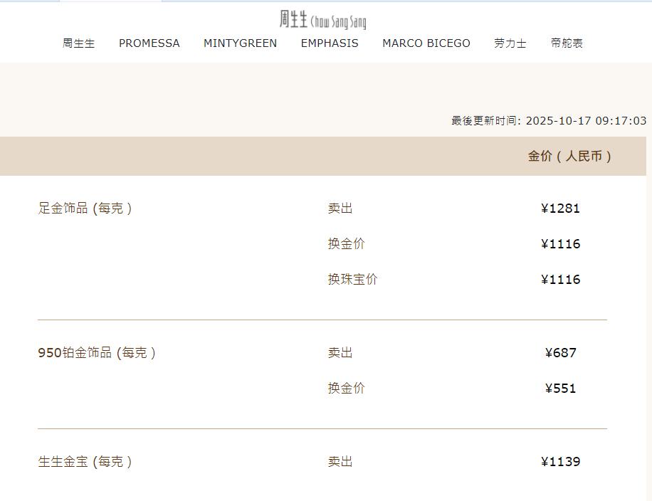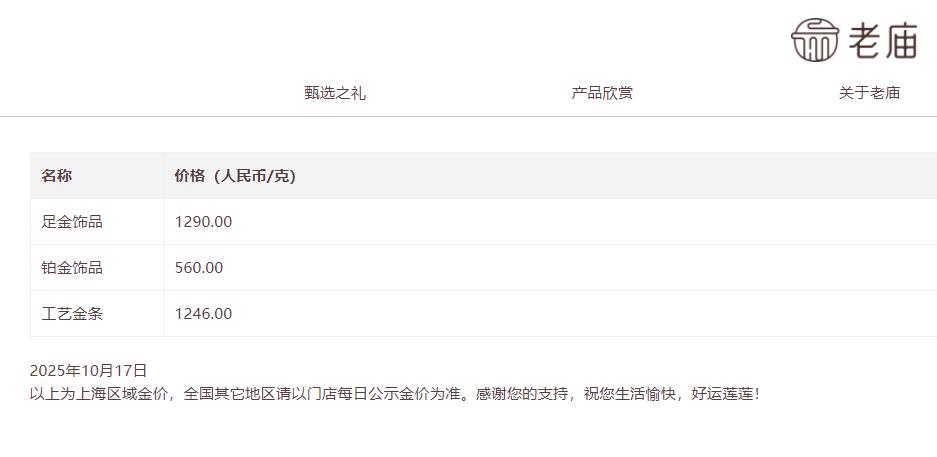 受此影响,17日,国内金饰价格也持续上扬,中新经纬查询发现,有品牌金饰克价涨至1290元。其中,老庙黄金金饰价格为1290元/克,单日上涨42元;周生生为1281元/克,单日上涨36元;老凤祥为1280元/克,单日上涨35元。