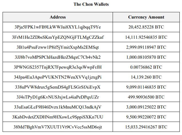 陈志的部分非托管钱包 图片来源:民事没收诉讼书
