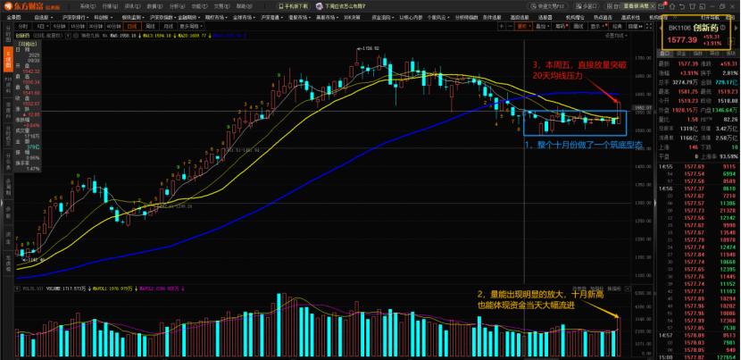 本周五,在科技板块大幅下挫的映衬下,创新药板块逆势大涨3.91%,成功突破20日均线压力位,且伴随成交量的显著放大,这一量价齐升的态势无疑释放出积极的市场信号。