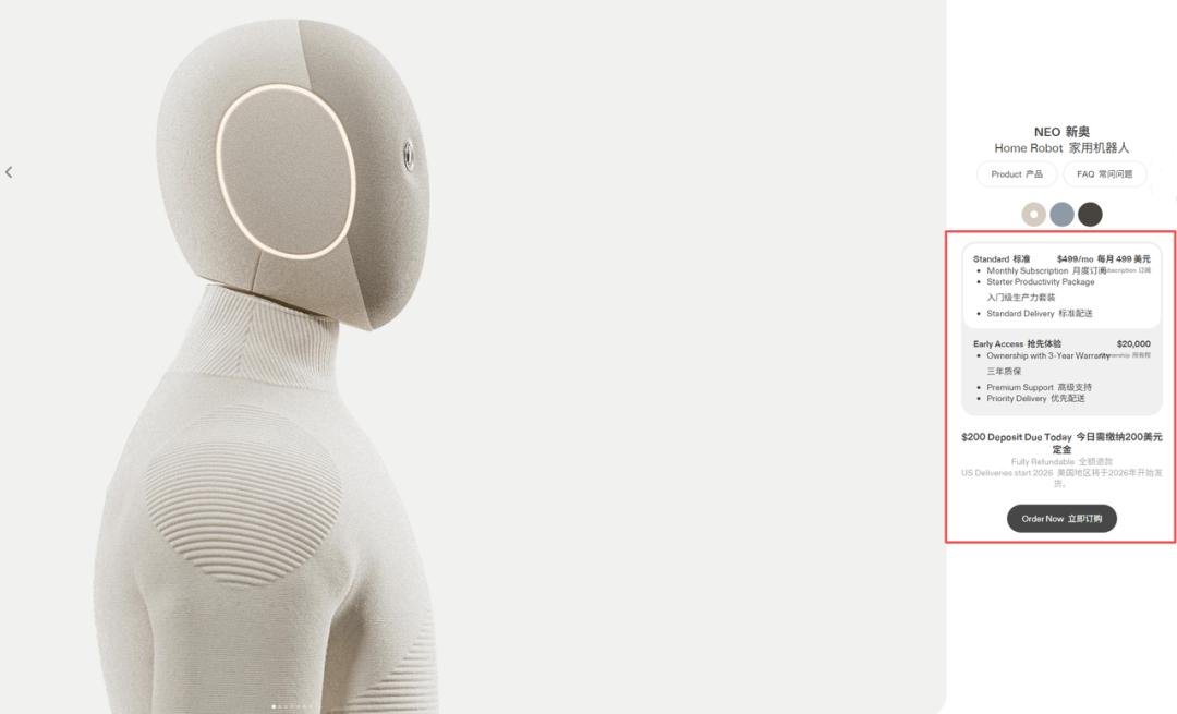 就在前天,加州 1X Technology 的 NEO 家务机器人火热开订。
