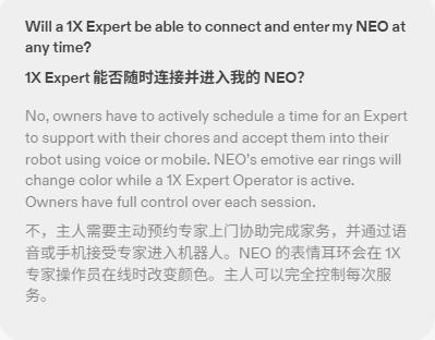 首先,人要休息,那机器人肯定不能随叫随到。在官网上 1X 表示,想用专家,你得预约。