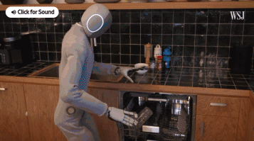 华尔街日报的记者去实地体验了一下 NEO,别说让它亲手洗碗了,就连把干干净净的锅碗瓢盆放进洗碗机里,看起来都挺艰难。