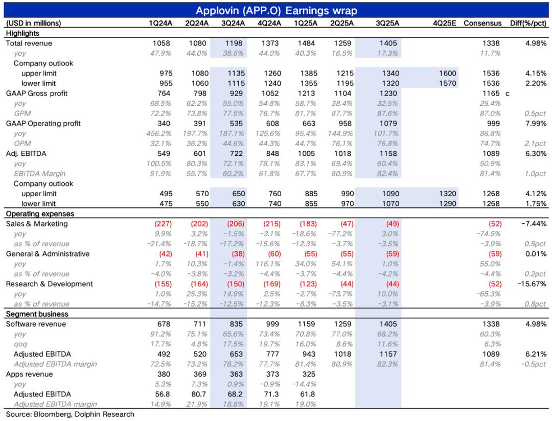 Applovin于美东时间11月6日美股盘后,发布了2025年三季度财报。本次业绩小超一致预期,包括当期的收入增长和利润率优化,以及对Q4的指引。