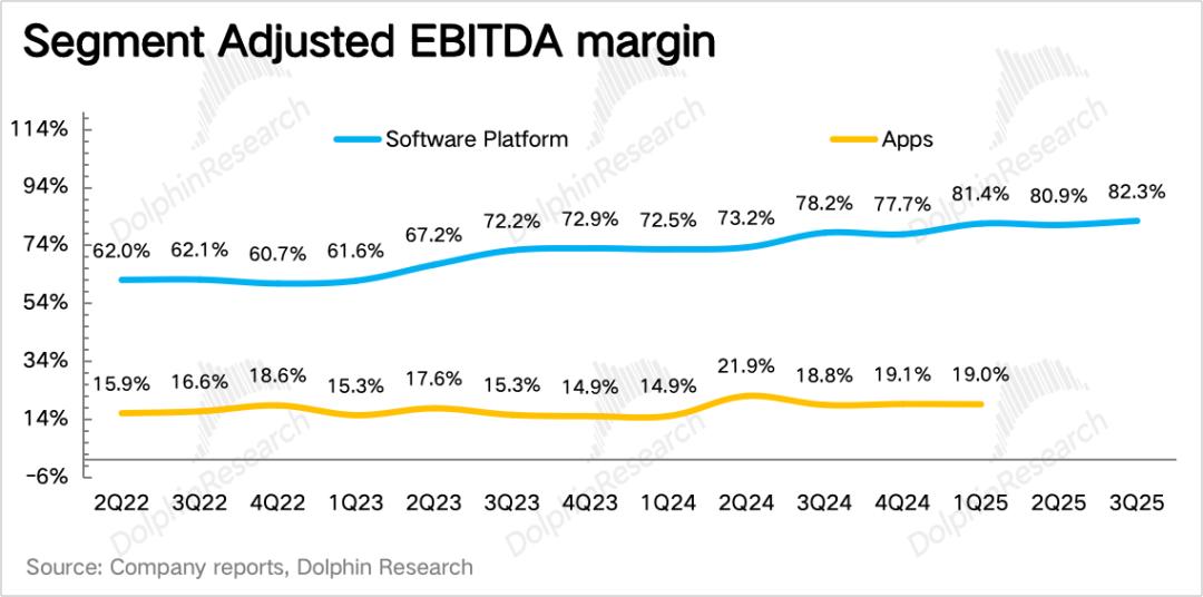 3、盈利到极致,后续提升难度加大:虽然上季度剥离完1P游戏应用业务之后,经营利润率达到76%、调整后EBITDA达到81%已经非常高了。