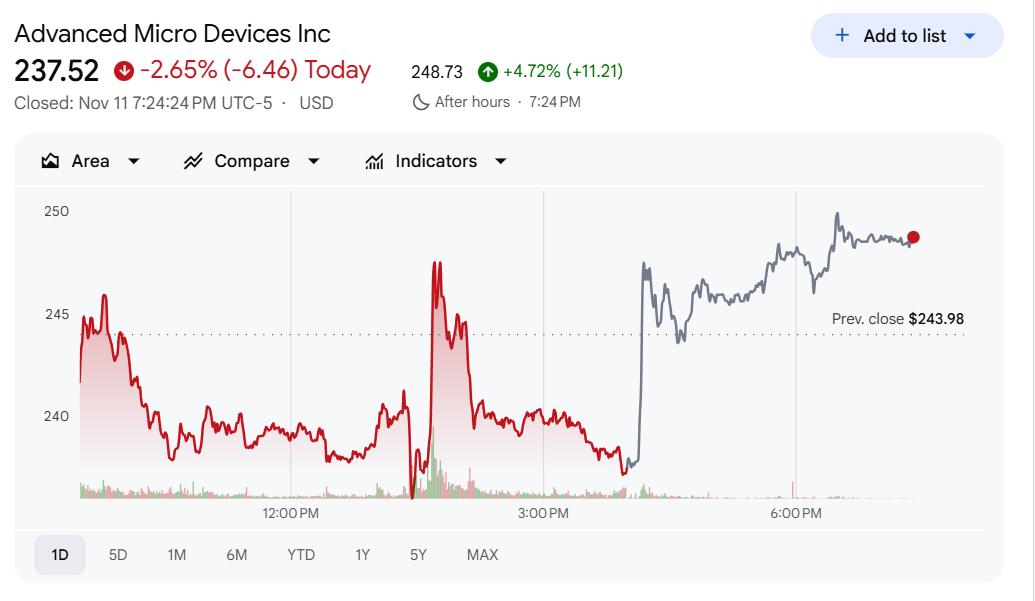 然而,最新的盘后交易数据显示,市场最终还是为管理层的长期乐观展望投下了信任票。在收盘后,AMD股价强劲反弹,涨幅达到4.6%。这表明投资者在消化了短期的季度指引顾虑后,重新聚焦并认可了苏姿丰对万亿TAM和公司高增长前景的坚定信心。