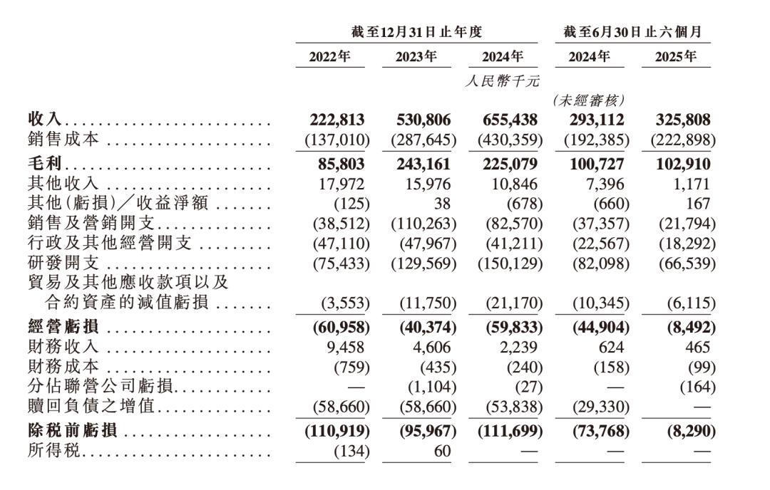 不过,硅基智能招股书披露的财务数据呈现冰火两重天的割裂图景。2022至2024年,营收从2.23亿元跃升至6.55亿元,年复合增长率高达71.3%,2025年上半年3.26亿元的营收,同比增长11.15%。