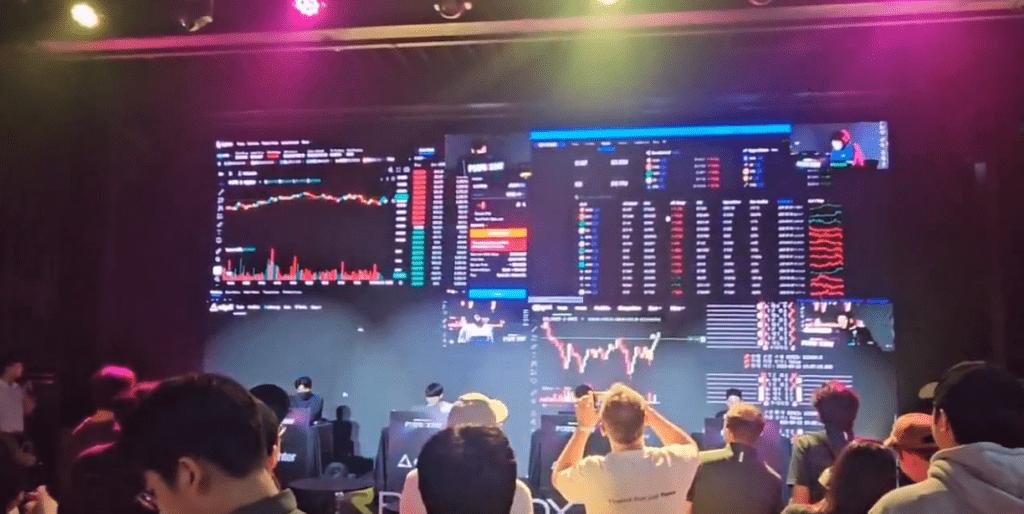 9月末,韩国“区块链”周的一场活动上,六支队伍用各自真实的资金,在相同的时间内快速交易永续合约,比拼到最后谁家的收益率比较高。