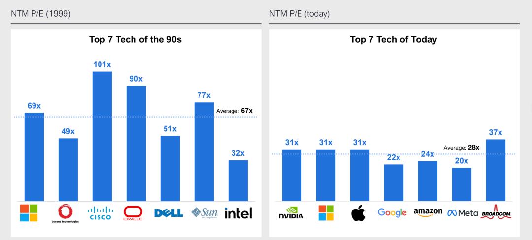 COATUE对当前时段和2000年互联网泡沫时期科技股的估值对比