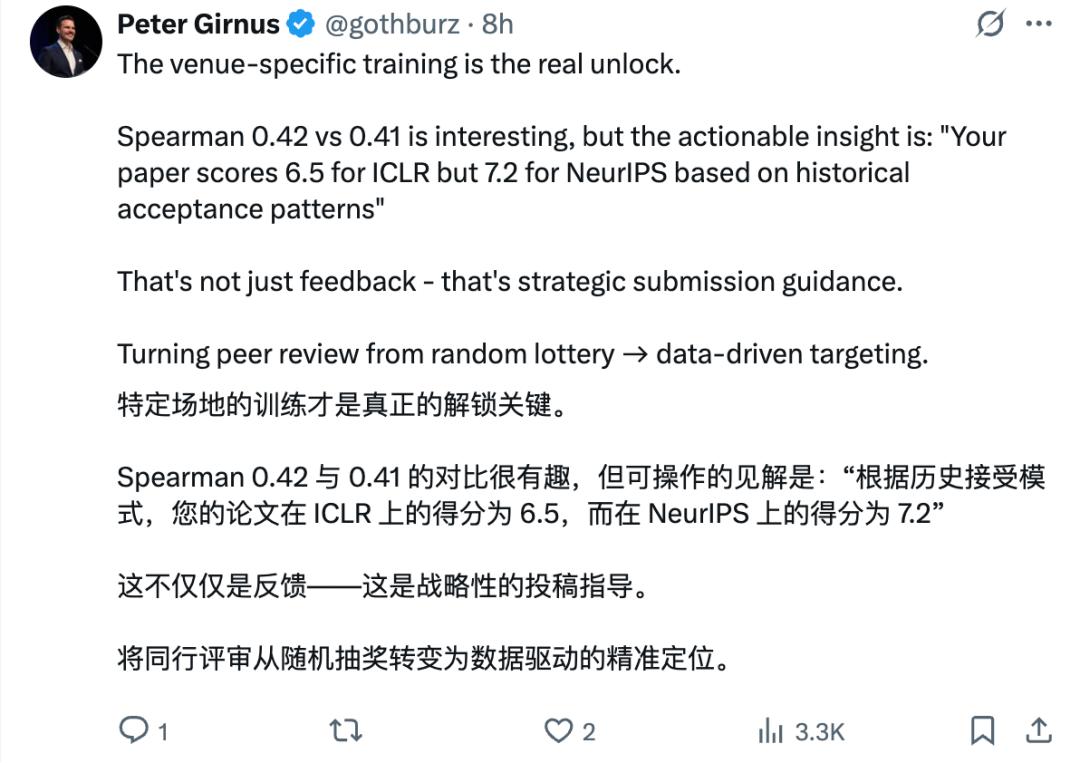 有网友希望智能体审稿人能够具备针对特定会议或期刊场景的评审,甚至给出预估的分数: