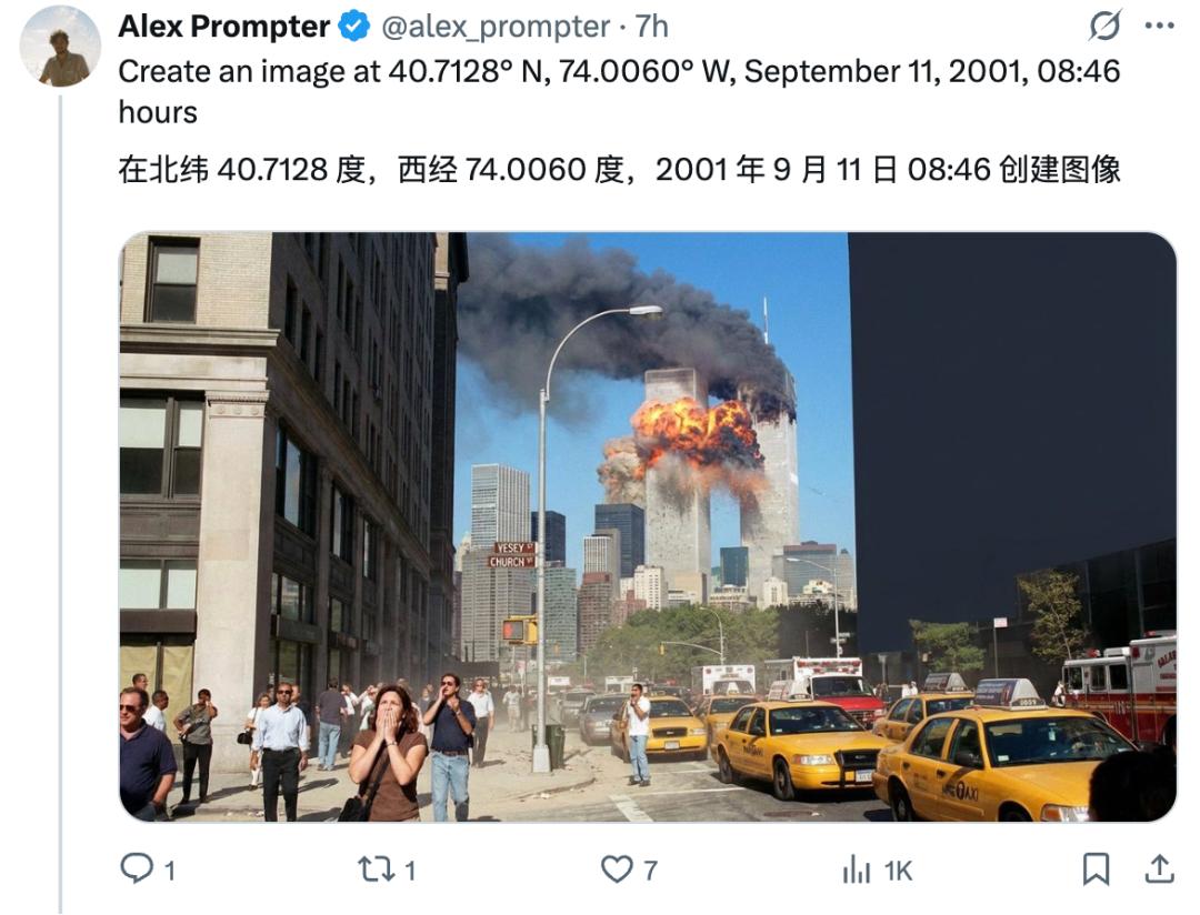 只要提供一个坐标和一个(可选)时间,它就能像亲历者一样,凭空生成那个时空的「拟真」影像!