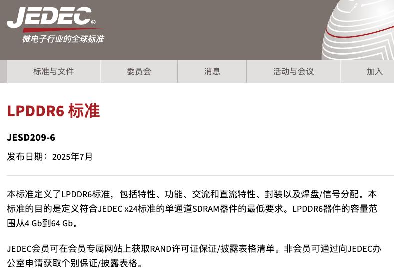 事情是这样的,今年 7 月份,JEDEC 固态技术协会公布了最新的 LPDDR6 标准。大概意思就是,LPDDR5 内存已经用了七年了,“战未来” 的事儿就交给新协议吧。
