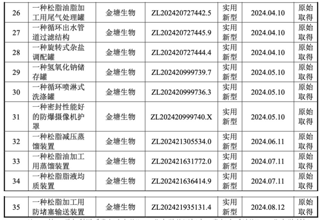 专利方面,格林生物最新招股书显示,公司拥有35项现行有效的专利授权,其中发明专利24项、实用新型专利11项。具体来看,有10项实用新型专利是公司全资子公司金塘生物在2024年4月至8月申请的。
