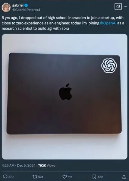我看到你发过一条推文:“五年前,我在几乎没有工程经验的情况下从瑞典高中辍学,加入一家创业公司。今天,我加入了 OpenAI,成为一名研究科学家,与 Sora 团队一起构建 AGI。”你是怎么做到的?