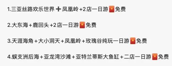 为了弥补住在县城就无法兼顾三亚热门景点的缺陷,海南县城甚至已经出现了花小钱办大事的极致性价比方案: