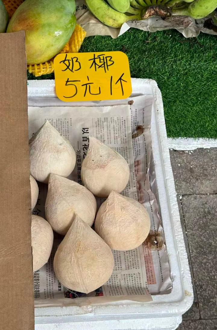没夸张,街边一个椰子5块钱,现砍现喝。摊主还会告诉你现在算贵的,过一阵10块钱3个。