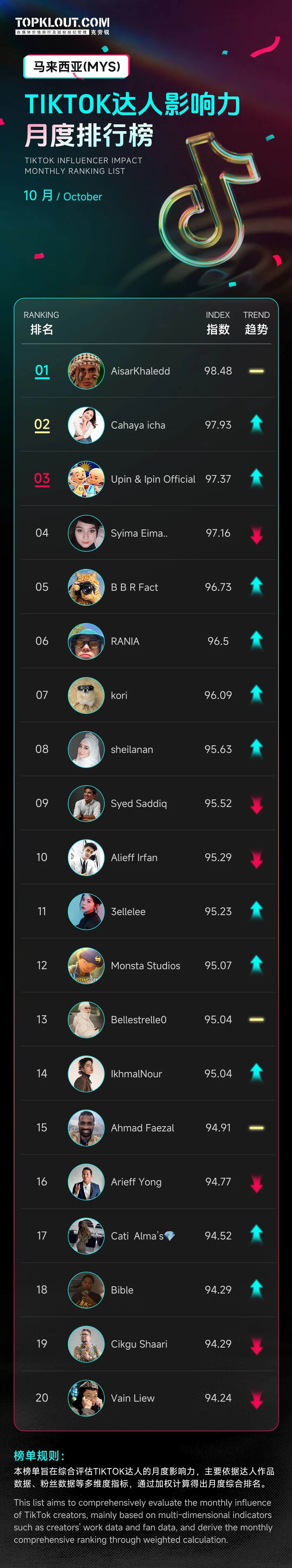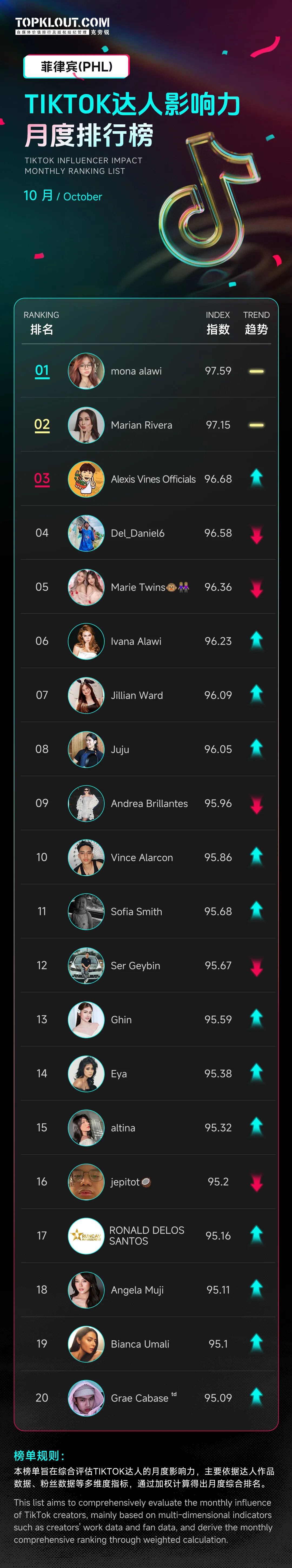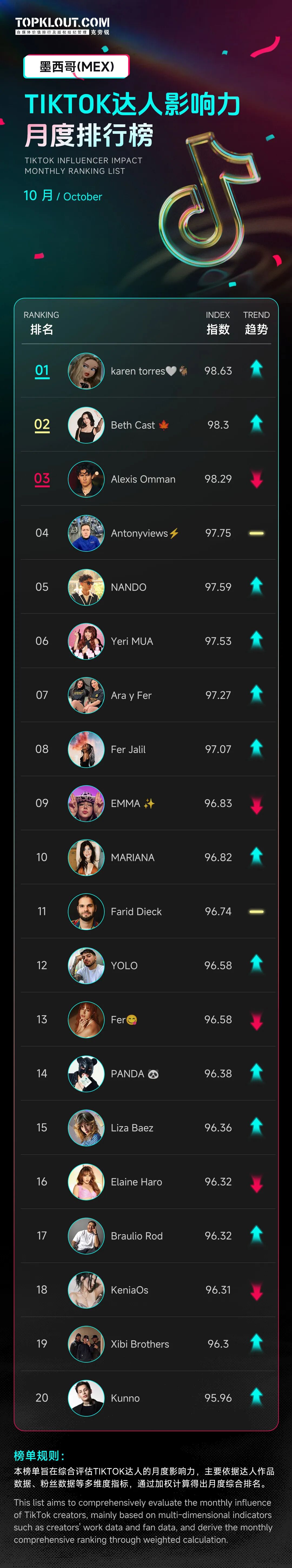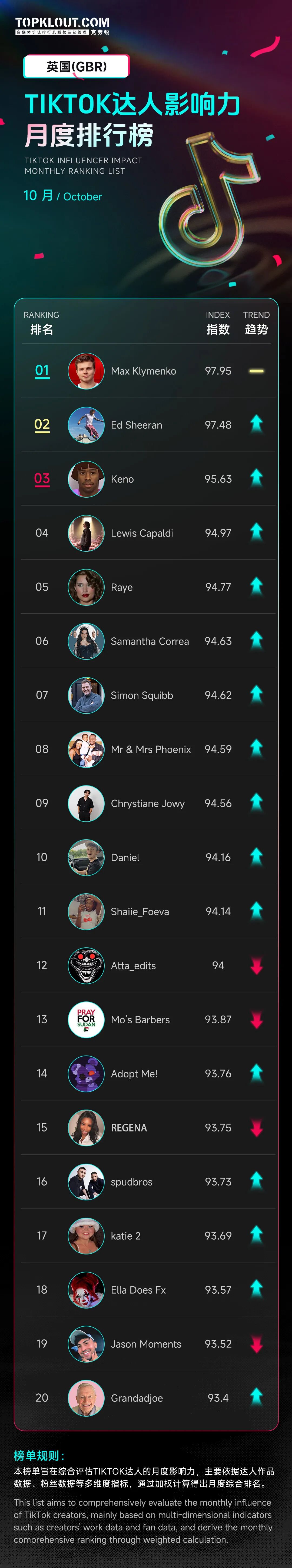 为了精准捕捉TikTok达人生态的变化,「克劳锐」全新推出【TikTok达人影响力月度排行榜】,聚焦不同国家的头部达人,呈现各国达人状况。榜单每月发布1期,本期为10月榜单。