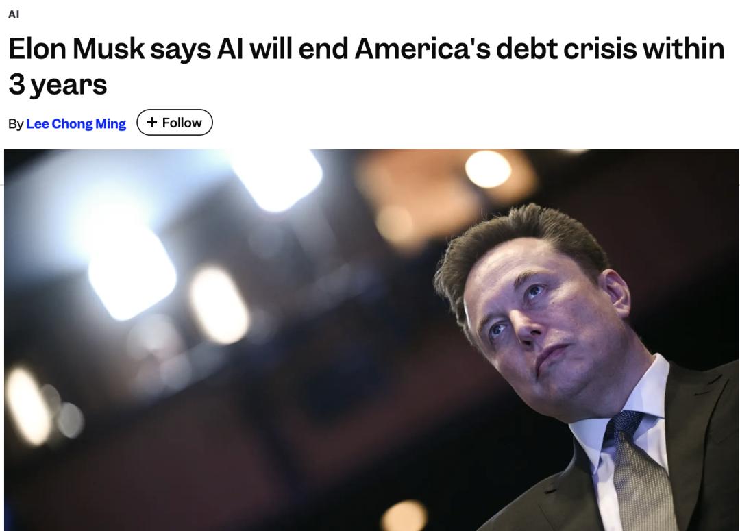 要理解马斯克为什么敢说「AI能解决美国债务」,必须回到那场访谈里的一句话: