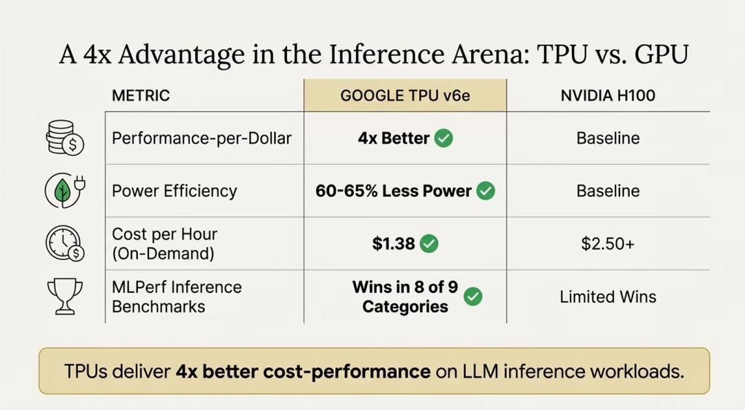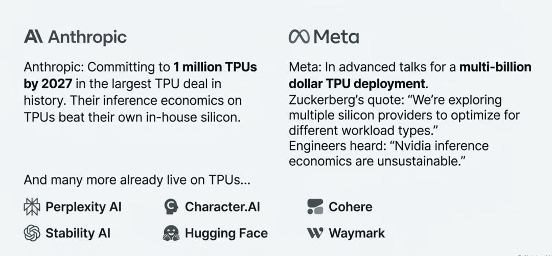 虽然Nvidia长久以来称霸AI训练市场,但谷歌TPU以4倍性价比优势强势切入推理市场,已吸引Anthropic、Meta等巨头迁移。