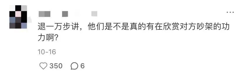 但也有网友敏锐地察觉到,虽然他俩密集输出的都是最难听的大实话,但细节之处全是对对方攻击力的欣赏。