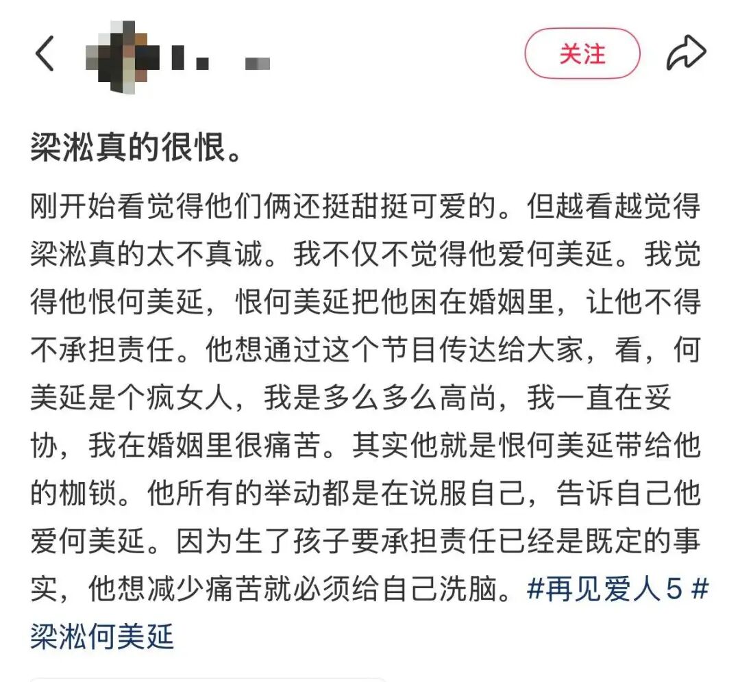 拉扯了几个回合后,何美延一句“我们不能道德绑架节目组”,触碰到了梁淞的逆鳞。