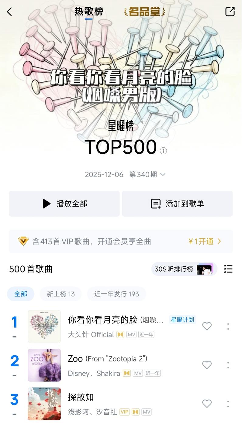 长生向惊蛰研究所介绍道:“现在有一些公司非常厉害,在酷狗音乐的TOP500榜上,经常可以看到AI歌登榜前十名,像最近特别火的AI音乐人‘大头针’甚至能够登上榜首。而过去专业人士创作的音乐作品,就算砸两百万下去做推广也不一定能进前十。”