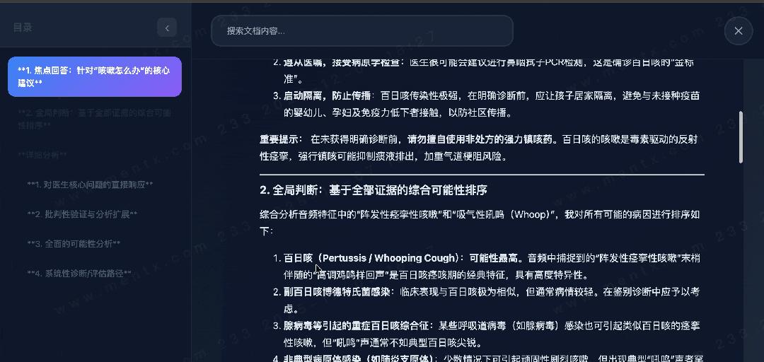 △输入孩子咳嗽声音频后,MentX给出的诊疗建议。图源:MentX试用