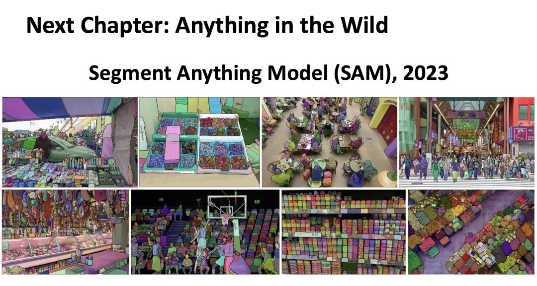 2023 年: SAM (Segment Anything Model) 横空出世。它在大数据的喂养下,学会了「分割万物」,不再受限于特定的训练类别,展示了视觉大模型的雏形。