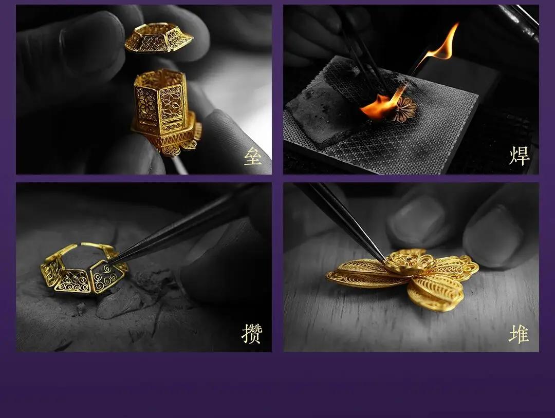 寶蘭承接了北京花丝镶嵌厂的资深金匠们,特色是“京派”花丝镶嵌技艺,是有三千年历史的宫廷工艺,被誉为“燕京八绝”之首。