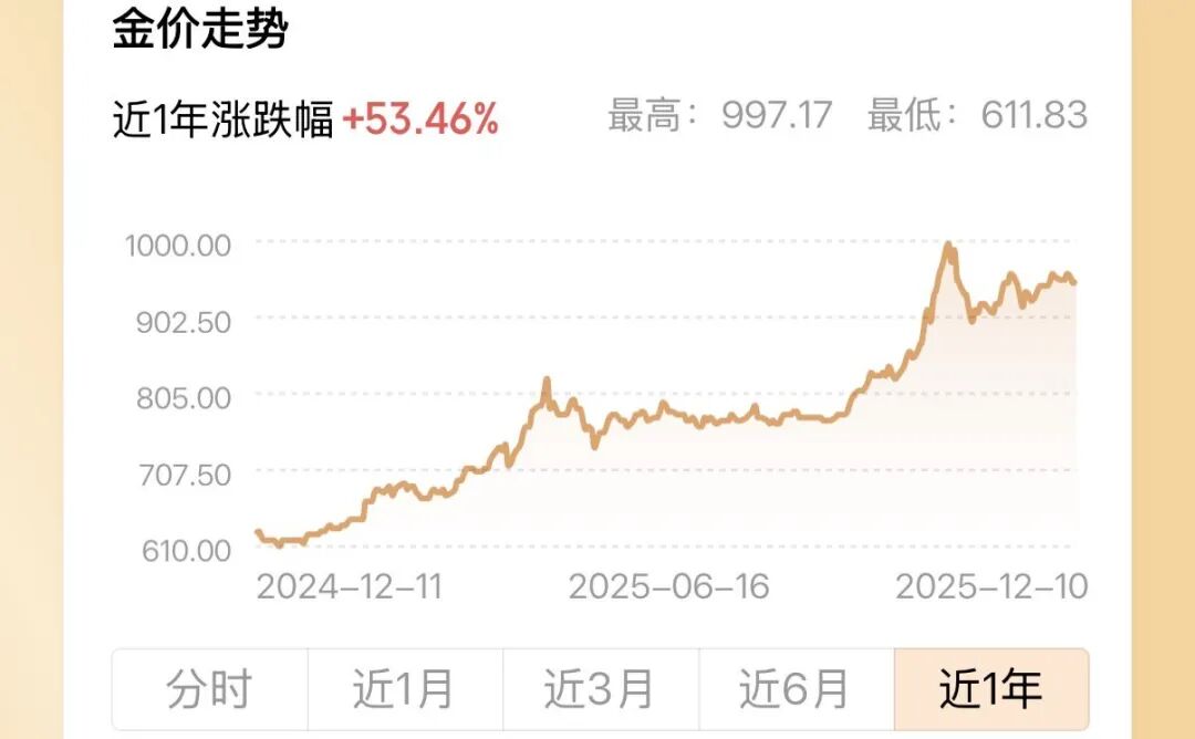 今年黄金价格涨疯了,从年初的每克500多,到今年十月已经超过900元。黄金饰品克价普遍突破千元。