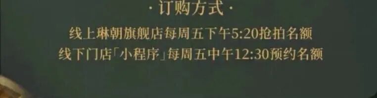 目前琳朝的购买名额定量开放,以12月为例,每周五放出中午在线下门店小程序拍出6个门店预约名额,下午再抢6个线下预定名额。