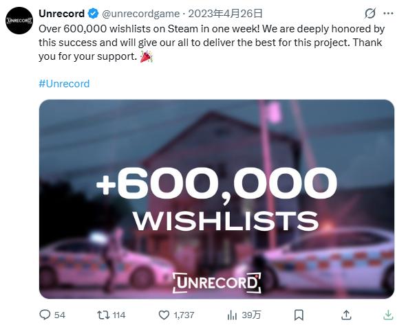 而这一效果直接拉爆了玩家们的情绪,所以很快,工作室就宣布《Unrecord》在Steam愿望单上的数字突破60万。