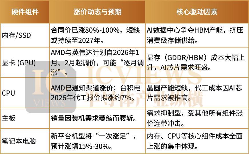 这场涨价风暴的广度与烈度前所未有,没有一块核心硬件能够幸免。它并非同时爆发,而是如同一张被推倒的多米诺骨牌链,从产业链最上游开始,压力逐级传导,最终将所有消费者卷入其中。