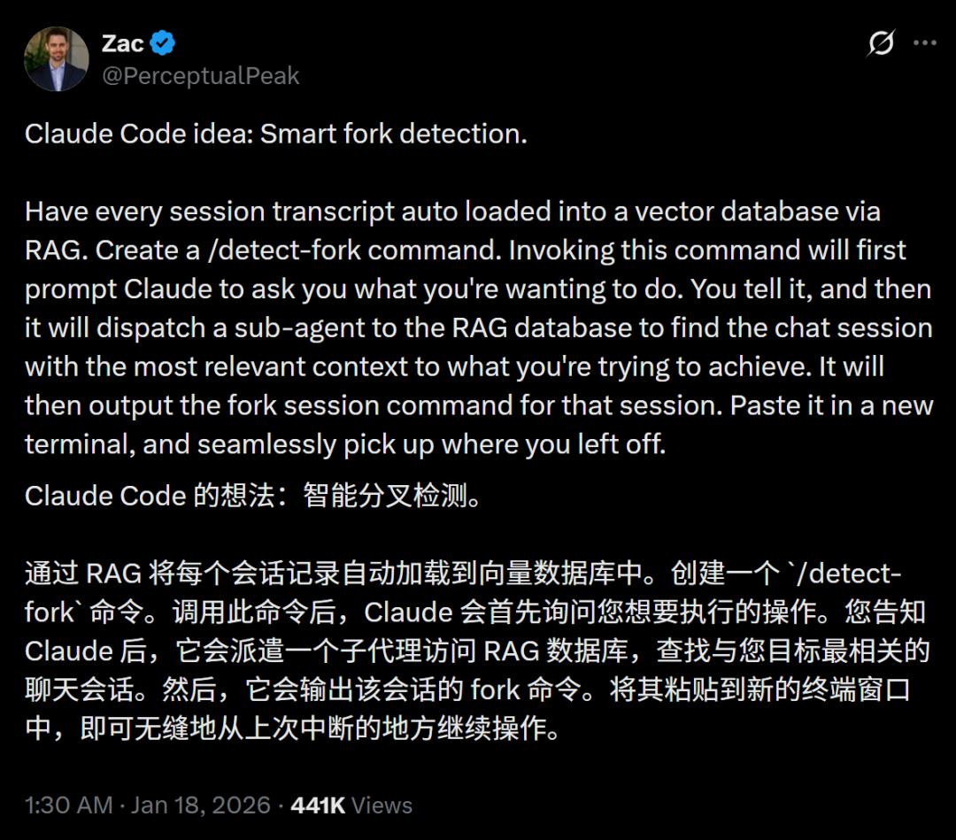 巧的是,就在今天,就有开发者抢先「截胡」。他在现有工具上实现了一个扩展能力——Smart Forking detection,让大模型第一次拥有了「可继承的长期记忆」!