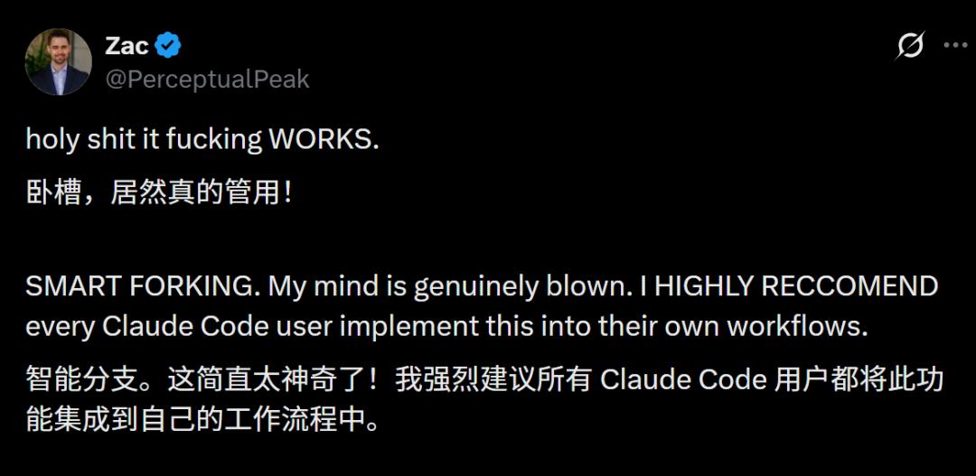 英雄所见略同,但路径不同。当官方还在设计永久记忆的形态时,开发者已经用Smart Forking,提前过上了「Claude有长期记忆」的生活。