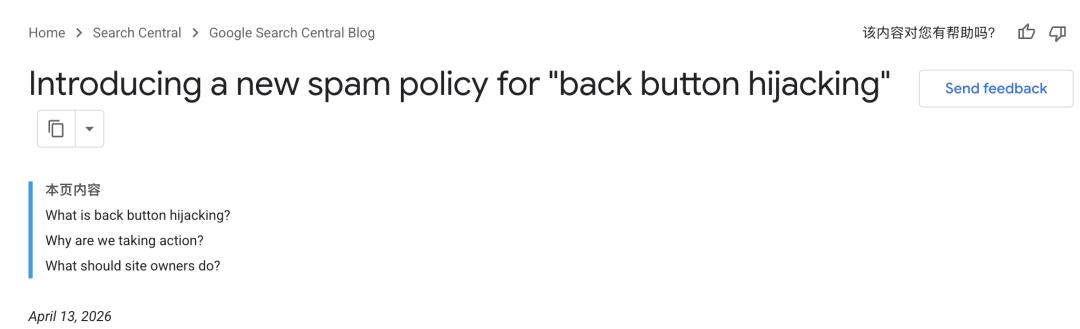 按照新政策,凡是干扰浏览器返回功能、影响正常浏览体验的网站,从 2026 年 6 月 15 日起都将被认定为违规行为。情节严重的,甚至可能直接影响搜索排名,乃至被从搜索结果中移除。