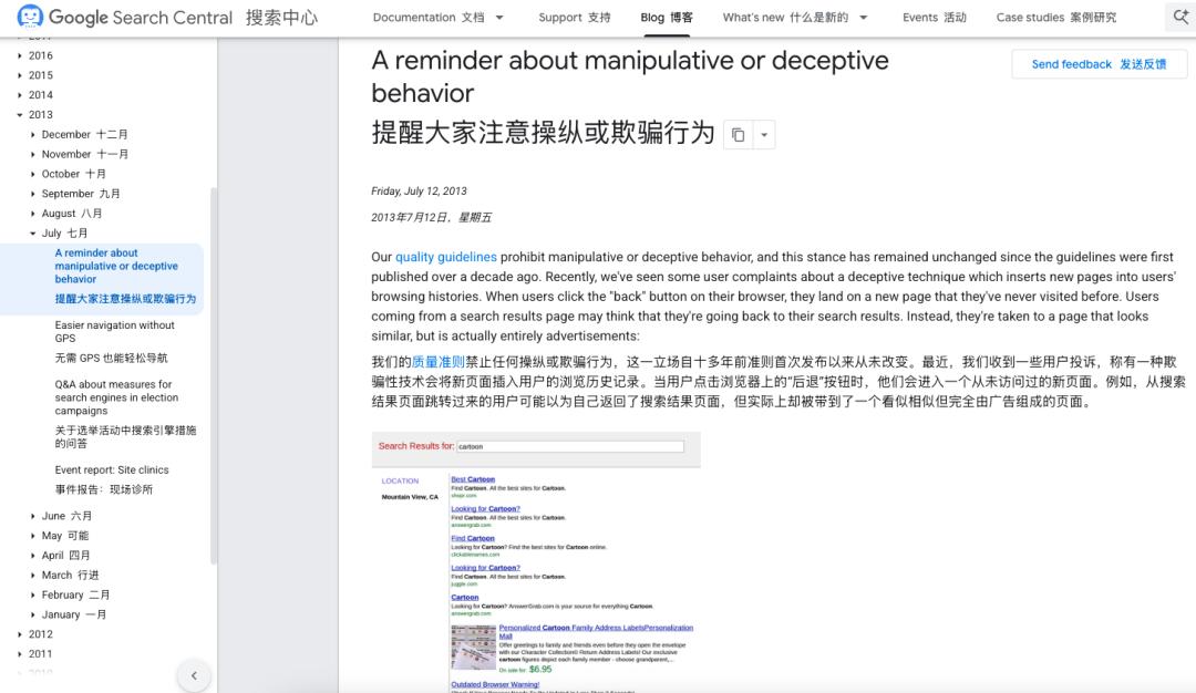 同时,Google 还提醒大家,这类行为其实早已违背了他们在 2003 年就提出的原则——当时就强调,网页应遵循透明、规范的数字行为准则。