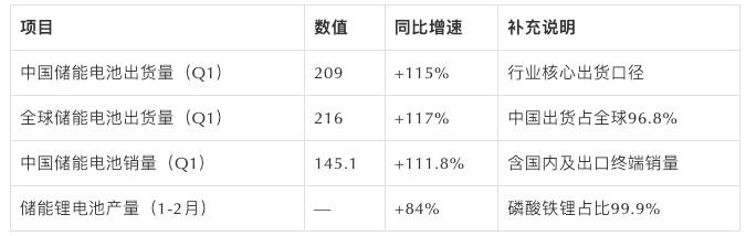 ▲2026年Q1储能电池出货情况