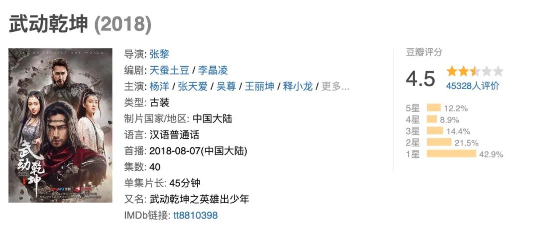 ▲古装玄幻剧《武动乾坤》豆瓣评分4.5