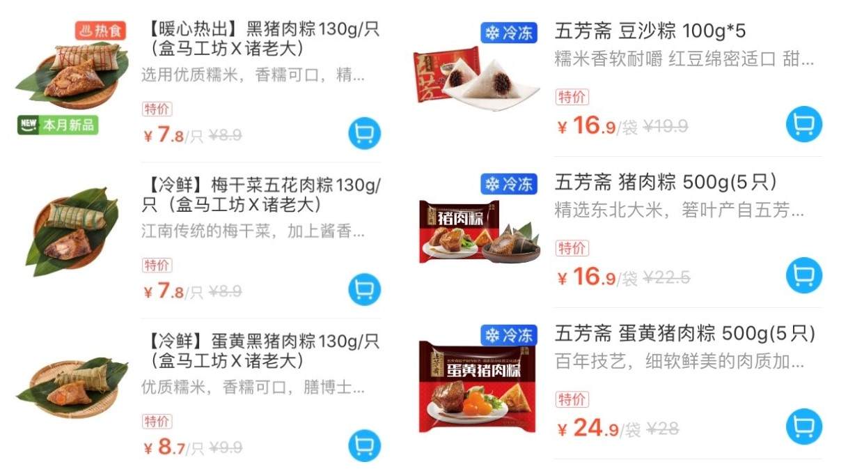 (良品铺子和盒马的端午礼盒背后,都是真真老老|图源:良品铺子天猫旗舰店、盒马APP)