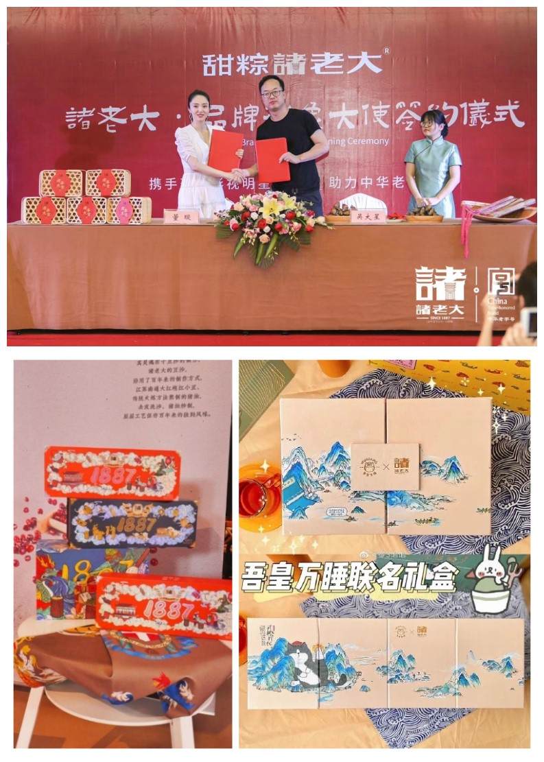 (6月3日,诸老大签约董璇为品牌代言人;6月20日,诸老大新品发布会发布一系列国潮联名礼盒|图源:网络)