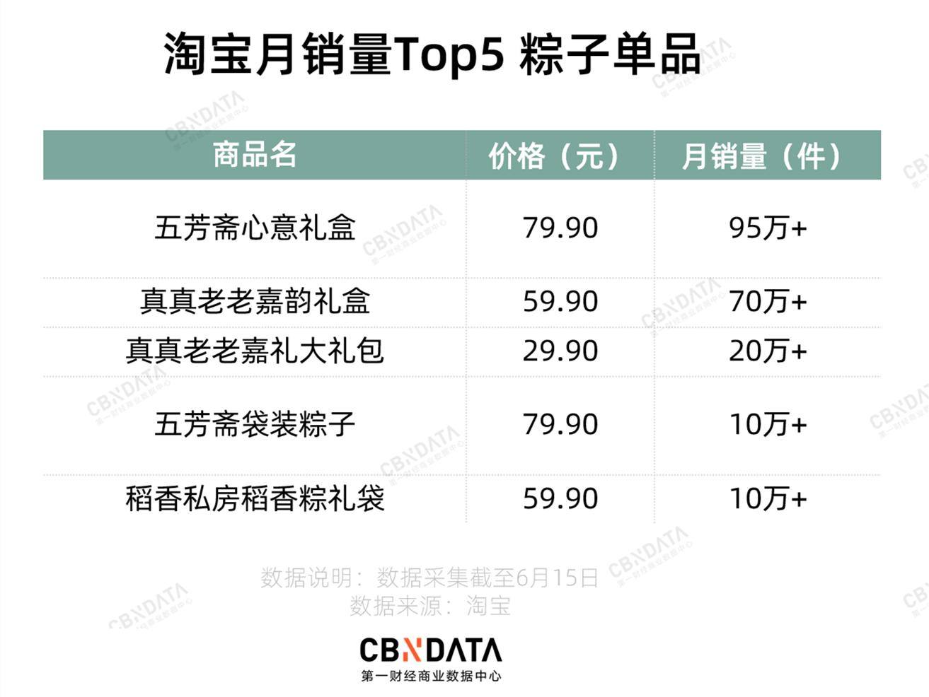 在淘宝平台,五芳斋粽子的月销售额几乎是第二名真真老老的两倍。