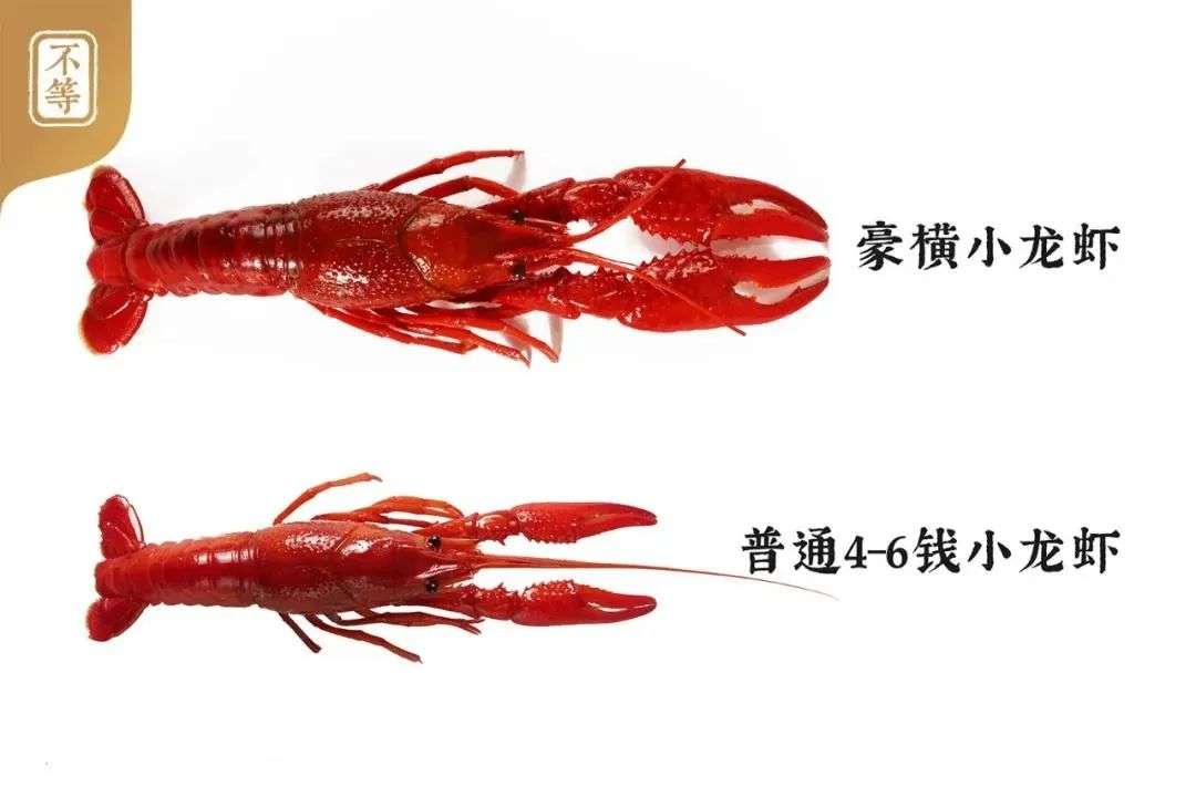 (不等表示电商常见的小龙虾规格是4-6钱,而不等的“豪横小龙虾”每只在9钱以上。图片来源:不等食研院公众号)