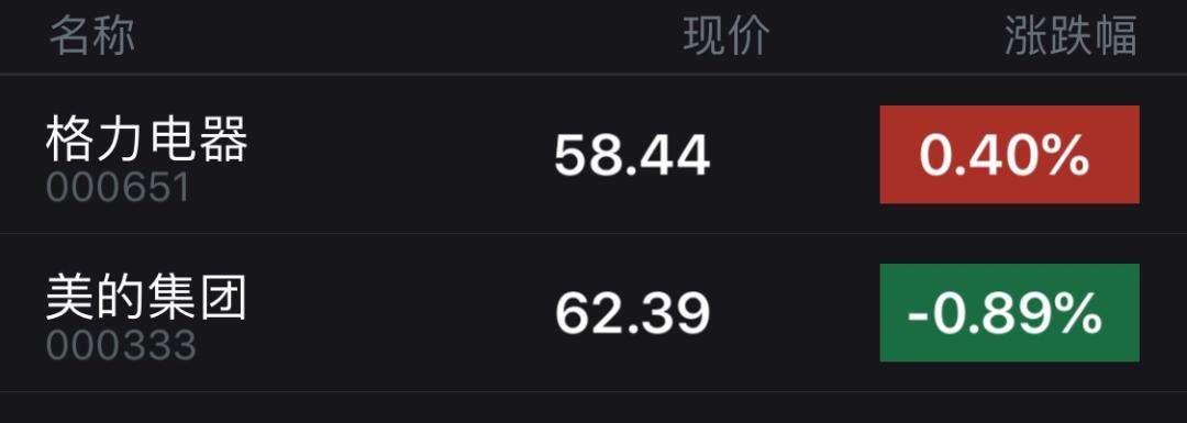 截至今天(7月3日)收盘,格力电器股价收涨0.40%,而美的集团收跌0.89%。